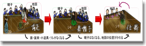 能(のう)/舞囃子(まいばやし)/仕舞(しまい)能は時間も長く、道具・人数・金がかかることから、