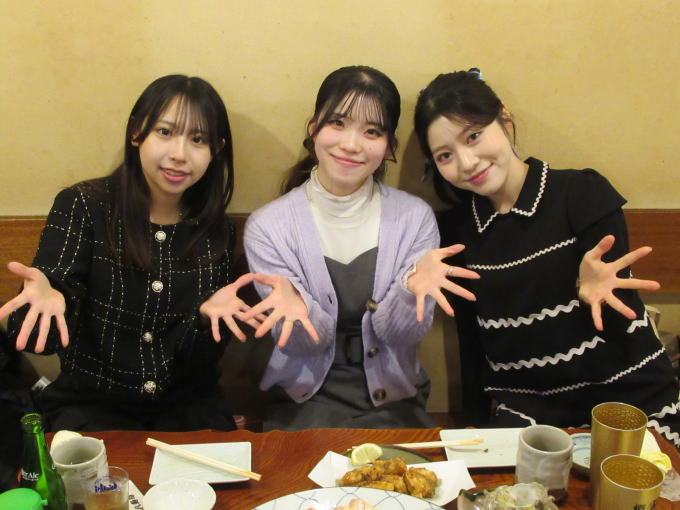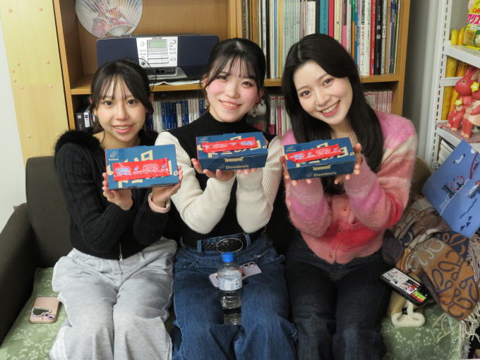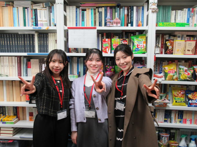 案内を して くれた のは、この 3名の 学生スタッフ の 方々 です。