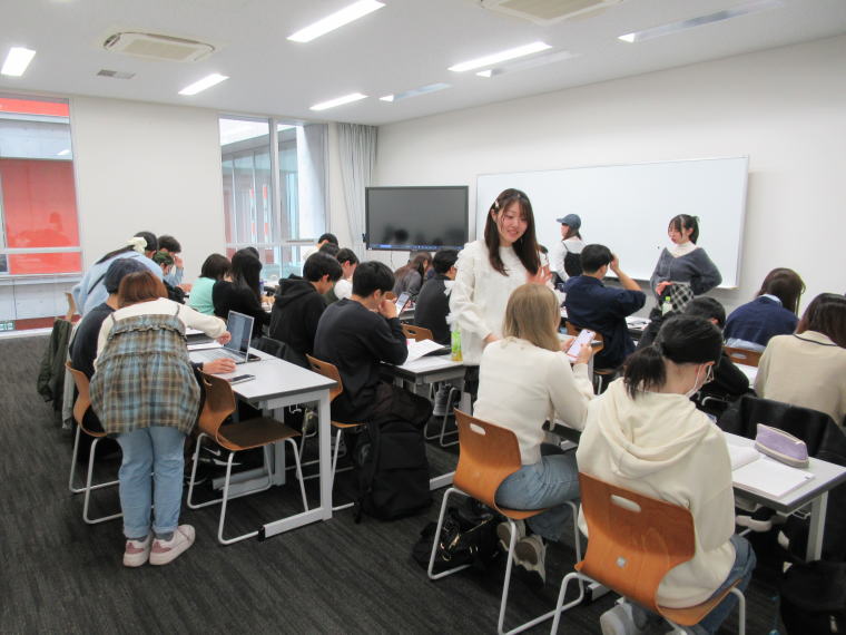 キリスト教学科 では 6名の 先輩たち が 新入生の 質問に 答えたり、相談に のって くれたり しま した。