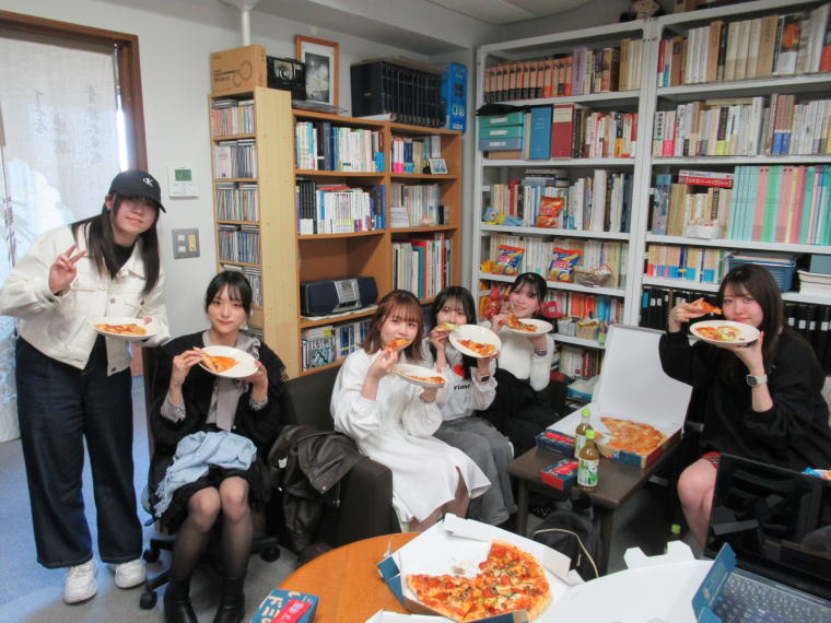 これは 2日目の ガイダンスの 後。 ピザ を 食べ ました。